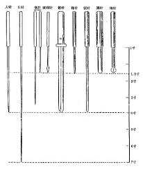 En cuanto al largo y grosor, si bien es cierto que las mas ultilizadas son de entre una y tres pulgadas, las hay de un centimetro (coreanas) y hasta 25 centimetros. Estas últimas requieren de una tecnica especial para su manipulacion dada la dificultad que encierra el conseguir que las mismas vayan en la direccion elegida. Estas agujas habitualmente son utilizadas en la tecnica que llamamos "trasfisiar", uniendo -con las agujas de tres pulgadas- dos y hasta tres puntos. En el caso de las de 25 centimetros se pueden unir hasta seis u ocho puntos a los que se agregará electroacupuntura.